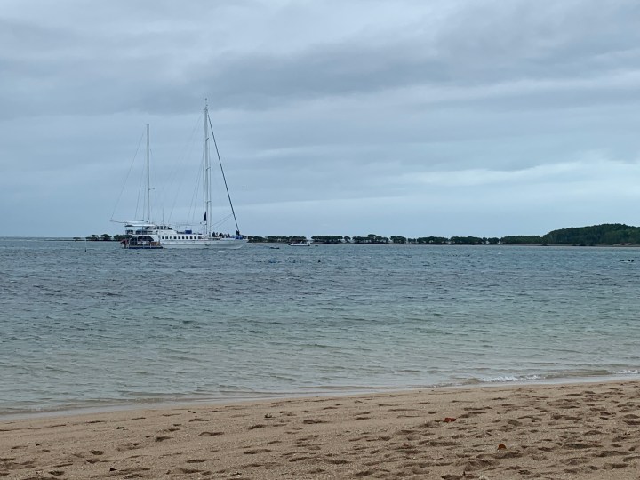 The shuttle picked us up at a hotel chain around the corner and ferried us to the Port Douglas Marina. We had just enough time to get a single shot soy latte before boarding. Fortunately for my fellow travellers, which of course meant I could then be half civil.