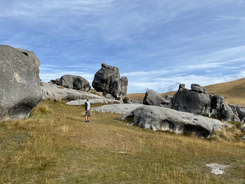 Castle Hill Basin is in the Canterbury high country at an altitude of 700m and about an hour and a half northwest of Christchurch. It lies between the Torlesse and Craigieburn mountain ranges and is characterised by its distinctive limestone rock formations. These limestone rock formations are the water eroded remnants of limestone formed during the Oligocene age 30-40 million years ago when much of present day New Zealand was covered by the sea.