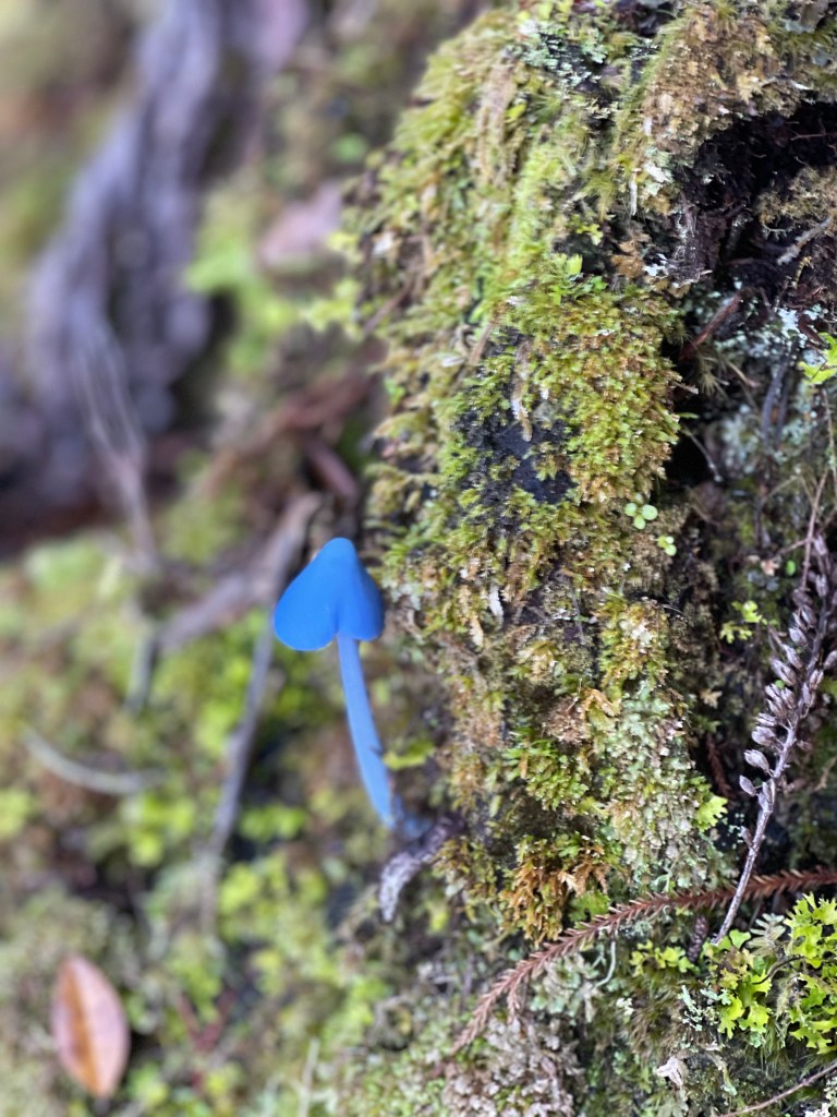 Blue mushrooms today, rain forests, undeniably beautiful glimpses of the lake sneaking through the bush.