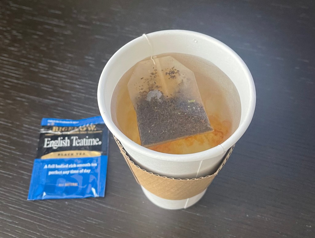 After some searching and begging, I managed to find a tea bag in the restaurant downstairs.