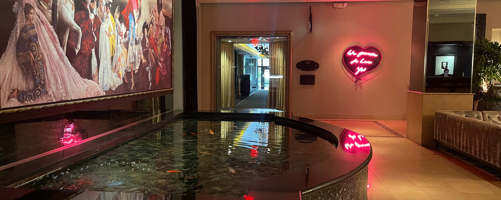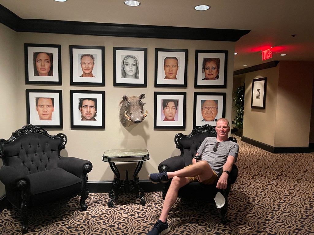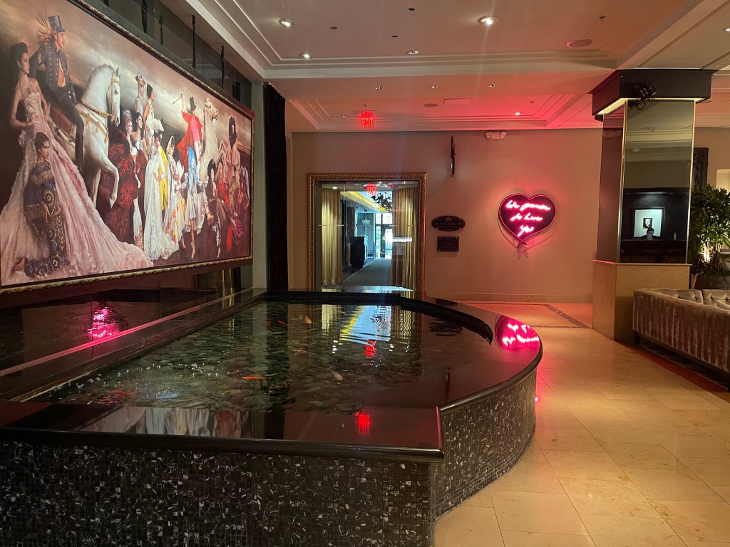Incredibly cool. Every wall housed a print of an artist, actor or musician. The foyer had a large original painting with a pool underneath filled with live fish. We wandered around there for awhile, pretending to be guests.