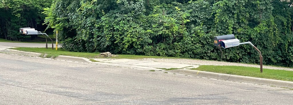 On the lake front side, the post boxes all stretch out on angles to make it easy for the postie I guess. I can see me on my bike plus a few accidents with that one. The other side of the road, the non lake front, wasn’t so special. They had normal post boxes.