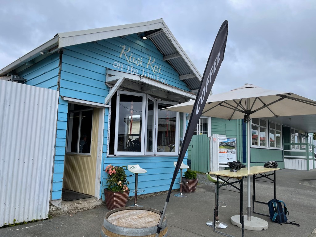 Stopped for caffeine in a cute little coffee hole in the wall called Kiwi Kai on the Waihou. Also had a meat pie there. Because we could.