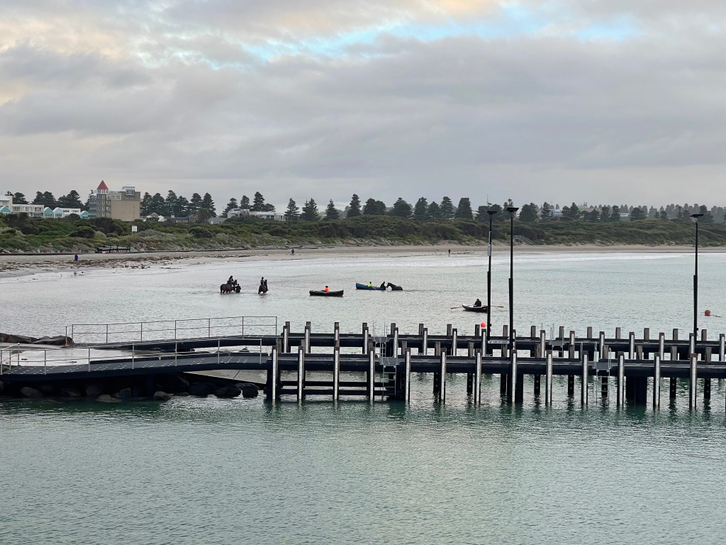 Next morning we headed off for the mandatory beach walk before heading off to Maslin Beach. Seems the beach is a training area for horses. But only between midnight and 9am 🤪