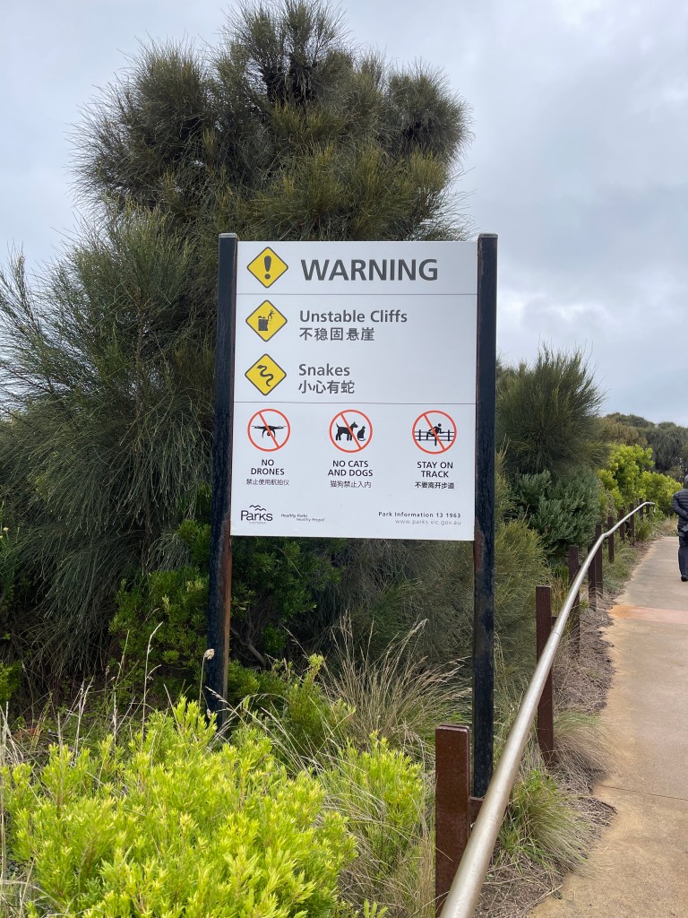 Leaving Geelong we headed out through Lorne towards the Great Ocean Road. And ended up going past the entrance to the Great Ocean Road viewing area, turns out it is on the right side of the road (obviously heading Westish) and you walk a tunnel under the road to view the 12 Apostles. (Be careful though, snakes on that there path, according to the warning sign).