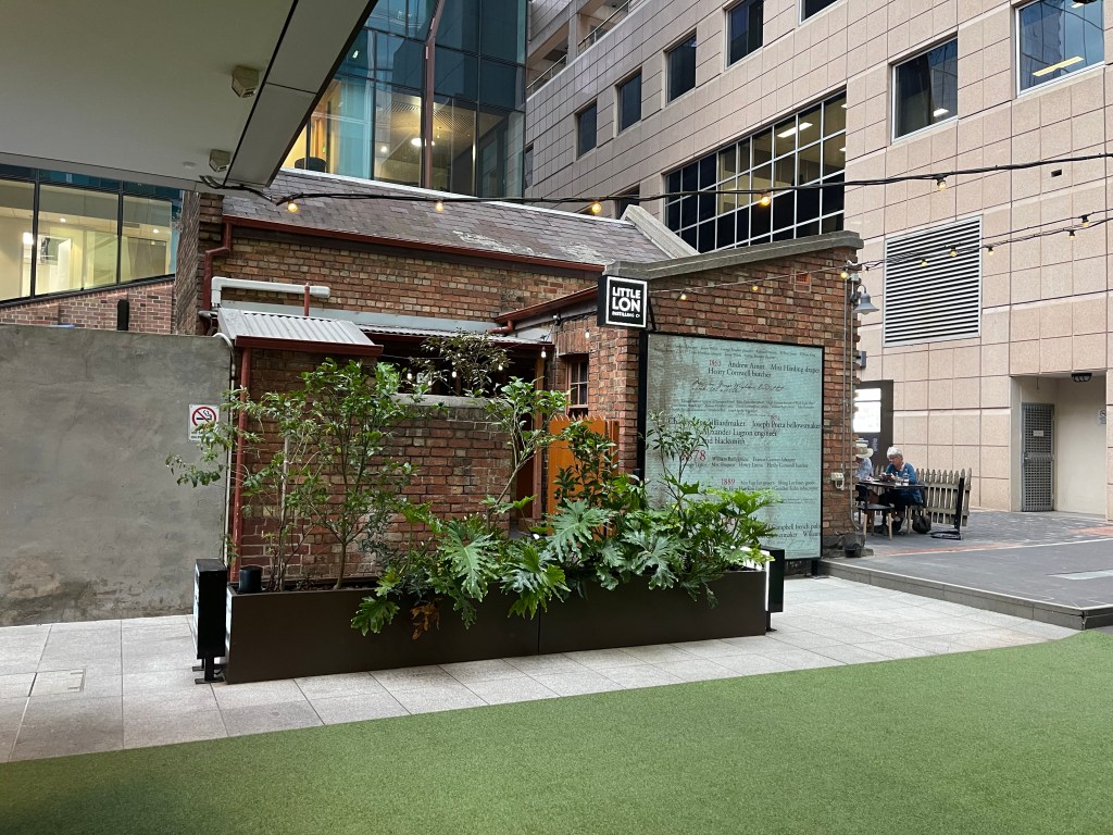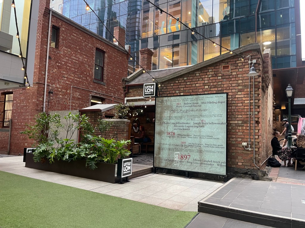 ‘Little Lon’, the former red-light district and slum area between Exhibition and Spring, Little Lonsdale and La Trobe. It included Madame Brussels’ famous brothels on Lonsdale Street, but the seedier houses of ill repute were down laneways, such as Casselden Place. The laneway was home to seven three-room brick cottages, and only number 17 remains. No 17 was a seedy brothel (its most famous madam/working girl was a Chinese prostitute nicknamed Yokohama (real name Tiecome Ah Chung), a sly grog establishment and the site of numerous police complaints’.