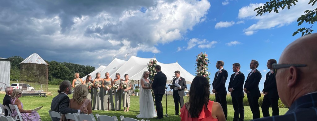 At Huser Farm. A wedding venue with a 1920’s barn, surrounding fields- soy beans and corn.