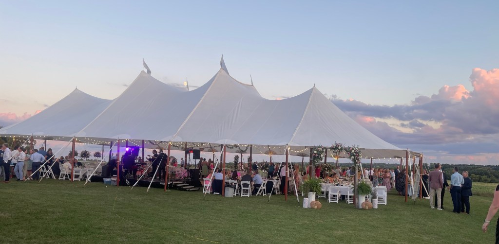 1. Wowser. The wedding looks stunning. The huge marquee, the setting, everything. The bride looked beautiful. What a fantastic day and night. The photos are amazing.