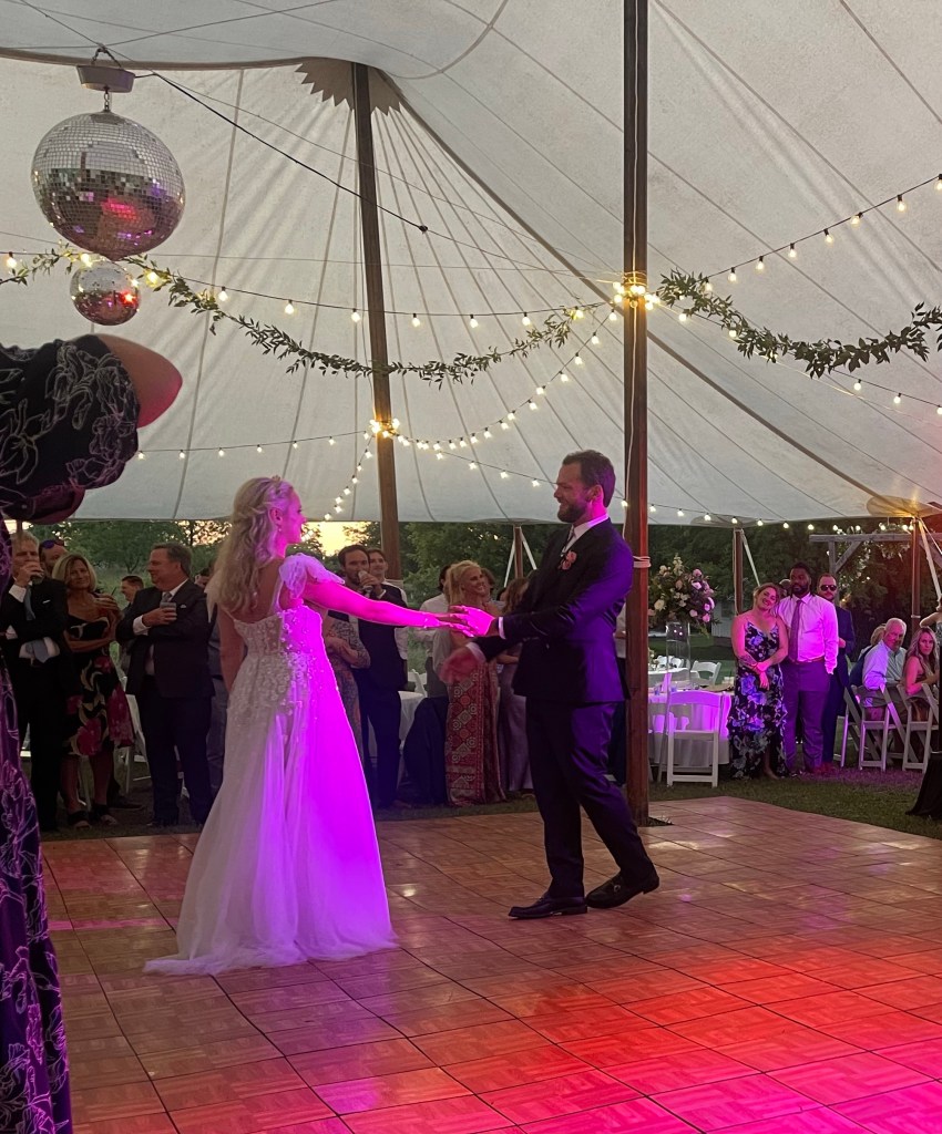 Then the new Mr. & Mrs. P swung by to say goodbye on their way to their honeymoon – Puerto Rico.