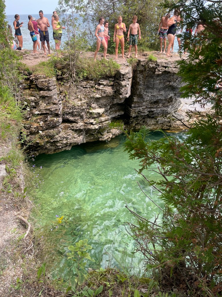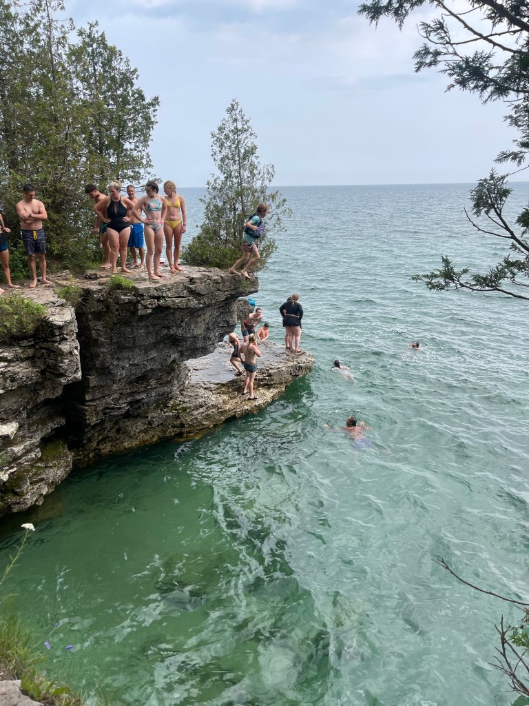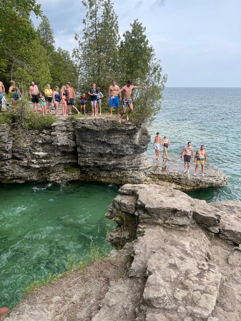 Cave Point is well known for its wave-worn dolomite/limestone ledges, underwater caves and amazing view of Lake Michigan. And where everyone jumps from the ledge.