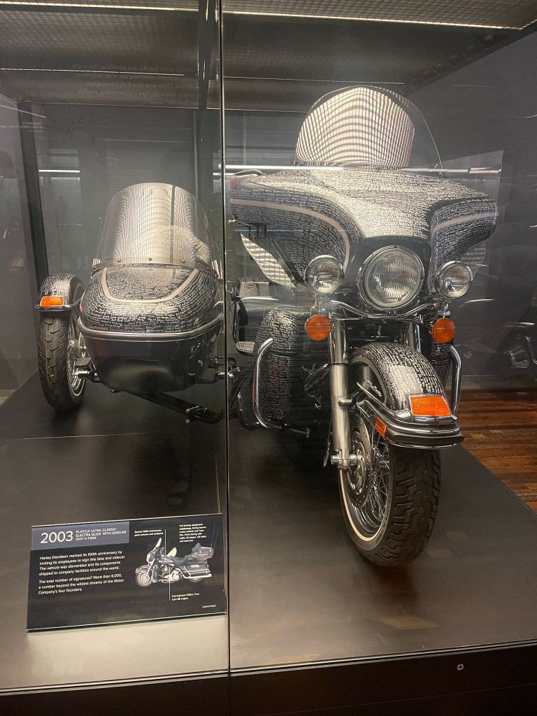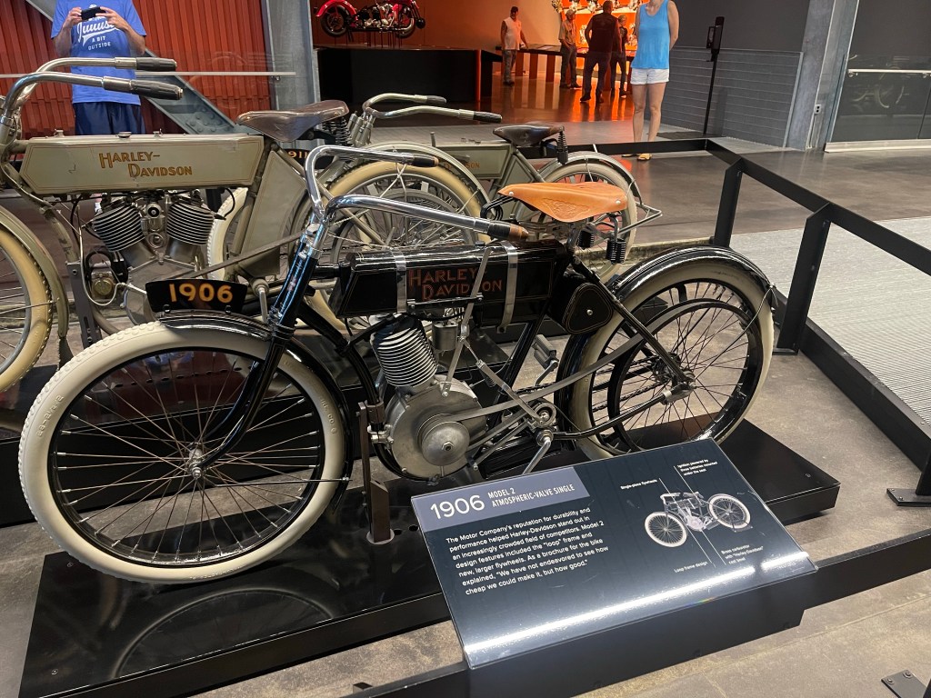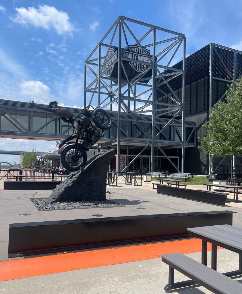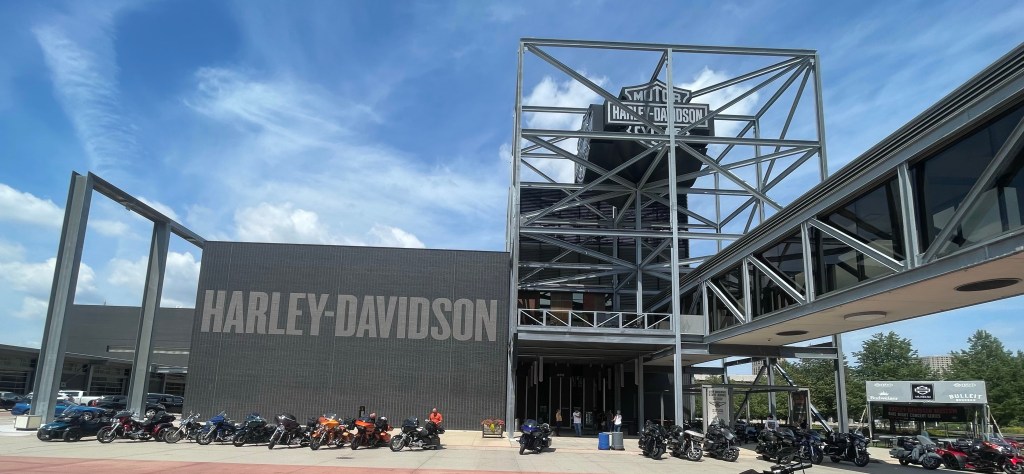 But first Milwaukee. We had come back for a reason. To visit the Harley Davidson museum. We aren’t motorcyclists although I used to ride a motorbike and still have my licence. God forbid anyone on the road if I ever used that licence. So we set our alarms for an early start (8.30am😜) and headed off to the museum. It was a toss up between the Wisconsin State Fair and HD Museum. MoD had given me a choice. But I figured we drove past the Fair and that was enough. Actually we drove to the fair when we first arrived back in Milwaukee, pulled up at the gate and tried to get in. Only to be told it didn’t start until the next day. Decision made. HD Museum it was. And we weren’t disappointed. In fact, we spent about 3 hours there and possibly could have spent longer.
