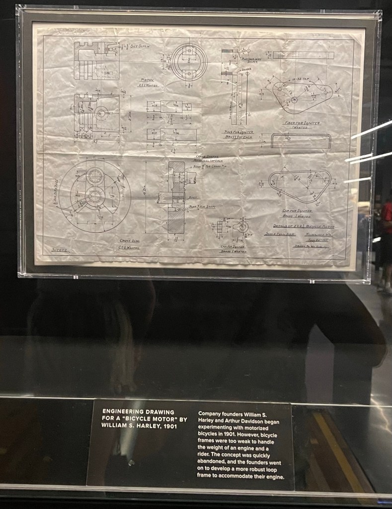 Harley Davidson began in 1903 when two friends, William Harley and Arthur Davidson left their respective jobs to take up their joint dream of making a ‘motorised bicycle’. The first home of HD was a one story shed 10×15 feet. The white lines in this picture indicate how big that shed was.