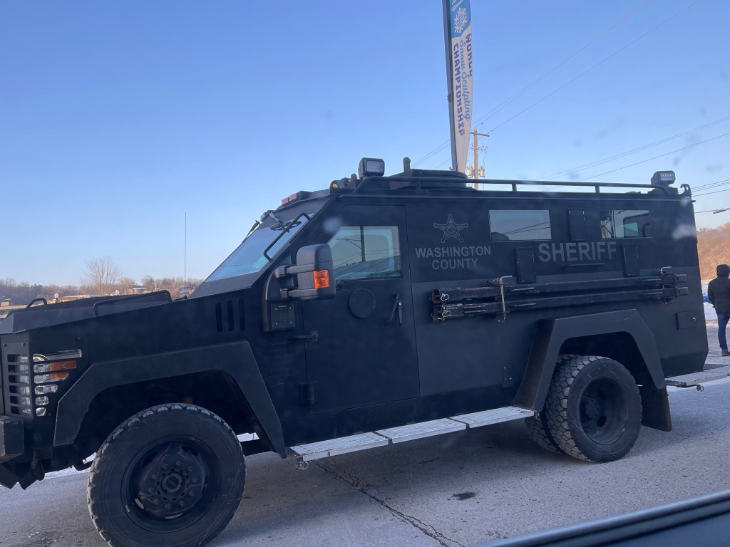 The Sheriff was waiting in the carpark, complete with an assault rifle.