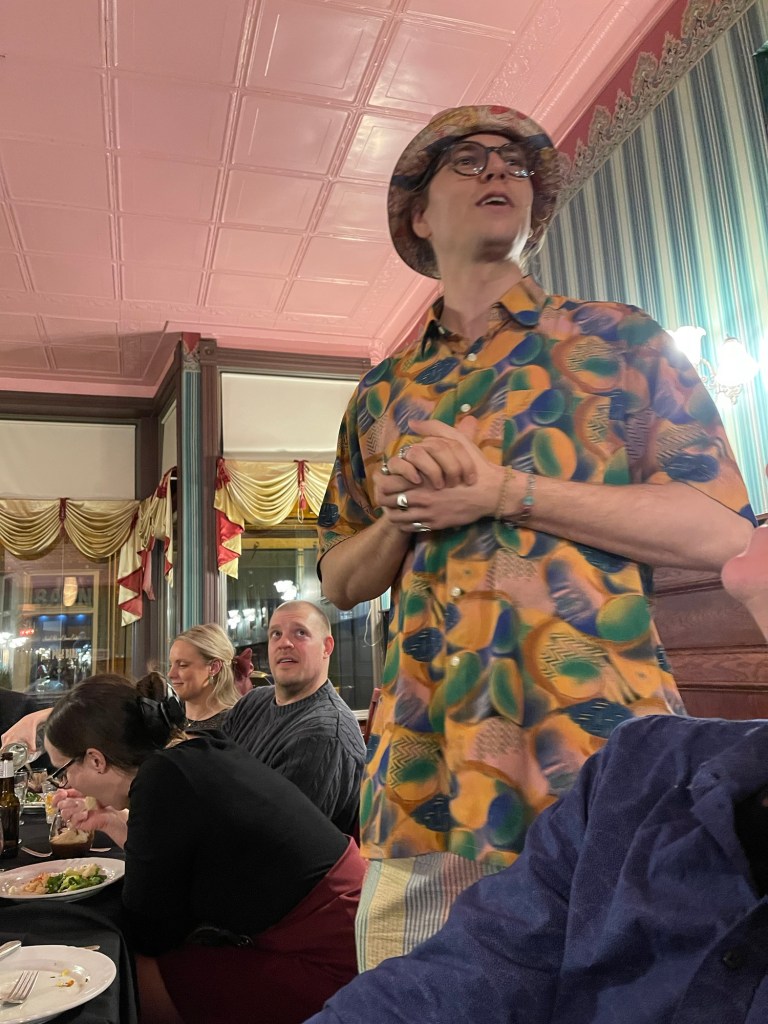 Tenant seats two sittings of about twenty people, five nights a week…I think…that bloody vodka again…..
