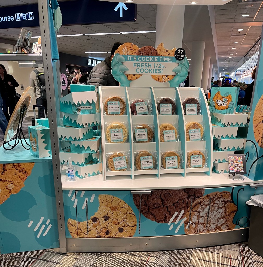 Still we arrived safely at the airport in time to down a single shot soy latte and to almost buy a world famous cookie that’s nearly as big as my head.
