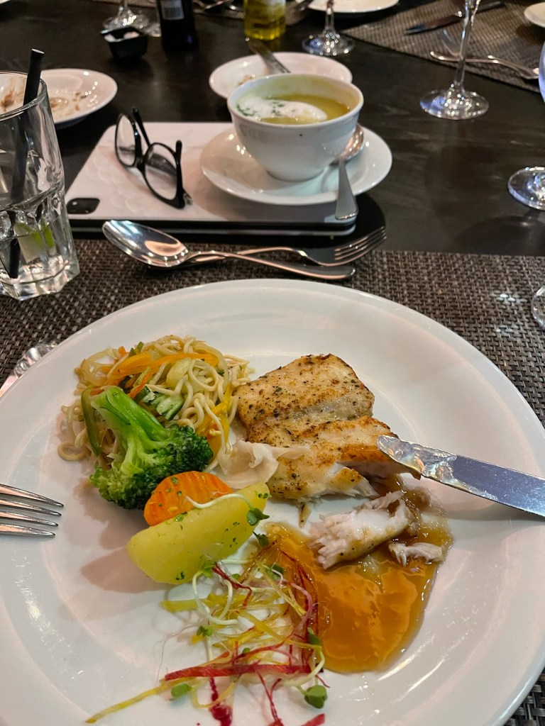 We are on level one. MoD did mention that if the boat leaks we are in real trouble, given we are actually just below sea level. I think we should be safe. There is a gym. First thing we checked. A hairdresser, I am definitely booking in there, a masseur, a pool and food and alcohol on tap.