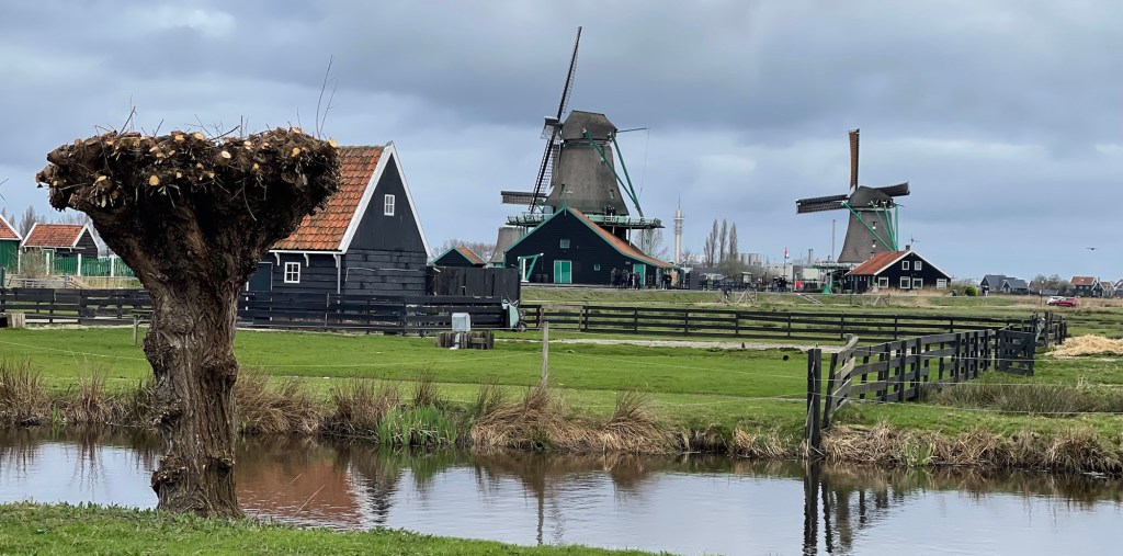 Today we took our allotted numbers and headed out to our allocated bus – the yellow one, so that Cynthia, our Dutch host could take us on a trip out to Zaandam where we were to view a village with operating windmills.
