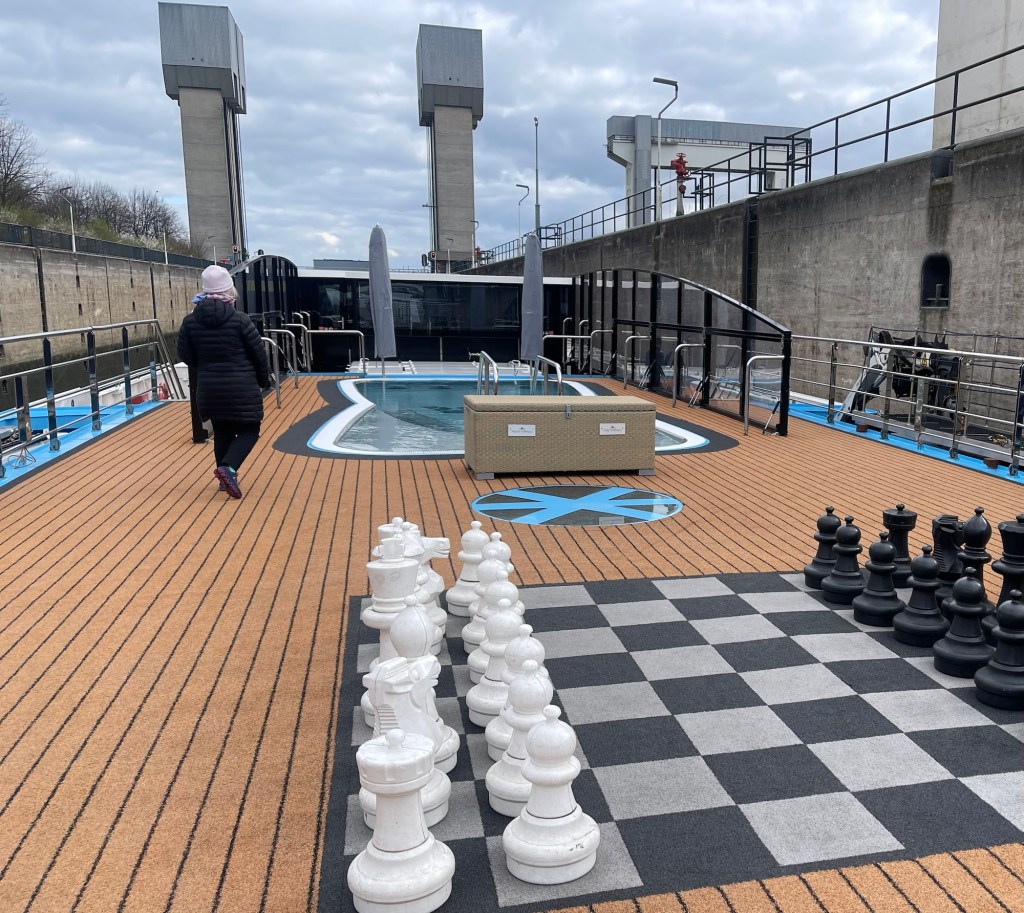 And this is the top deck of our vessel. The pool is warm but none of us are brave enough to try it.