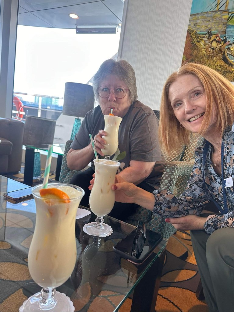 Being quite parched after our big morning, big lunch and watching the world go by, we adjourned to the lounge for a cocktail and then, unfortunately I discovered Pina Collada’s. Possibly not a good thing.