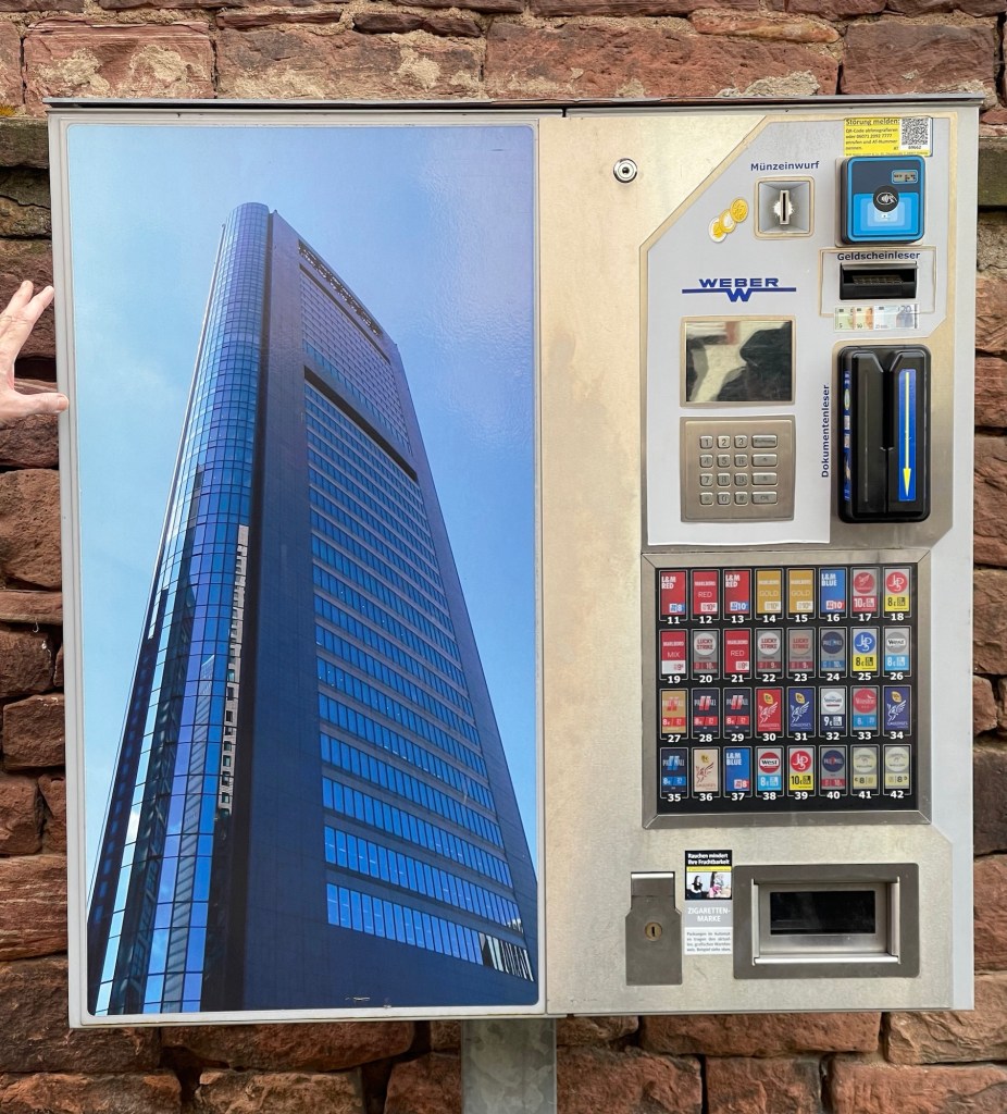 They smoke. A lot. Population 9000. Cigarette vending machines, such as this….about 100.