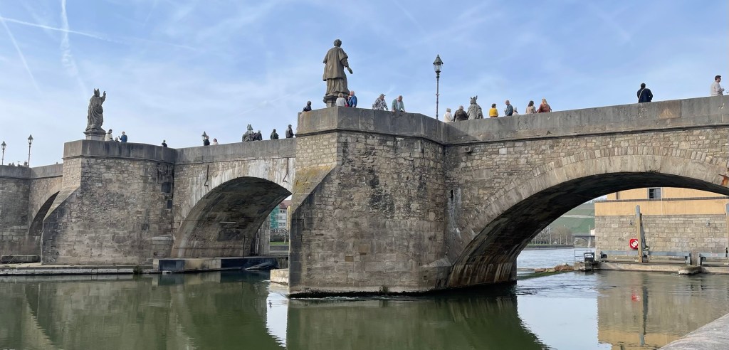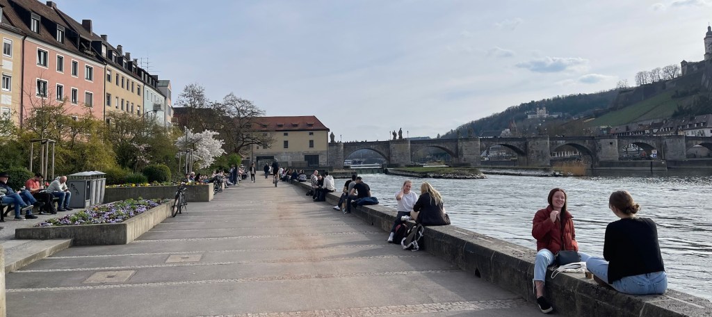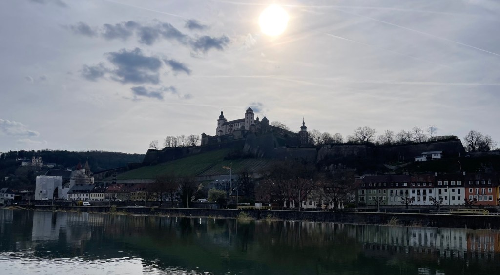 When we got back to Wurzburg we thought we would ride around and look at the sights. Initially there were bike tracks. When we got to the castle, there were not. We weren’t quite sure where we should be cycling and ended up following a young lady who took us into the middle of the tram tracks. Behind a tram. She did point out that it was annoying because there weren’t always specific bike tracks. Seems you had to ride down the centre lane of the road, which as our new best friend Rob suggested at least kept you safe from a good old car dooring. But once again I digress. We followed the young lady up the tram tracks, a HUGE bus right on our tail as we headed towards the river. That bloody bus would not let up, it followed me all the way up the hill, which frankly was a little scary especially when the road narrowed to only one lane each way. I just don’t have it in me to actually go up a hill let alone keep up speed! The footpaths have lips, so it was tricky getting up there but finally we did and managed to have a relatively safe ride along the river back to our boat.