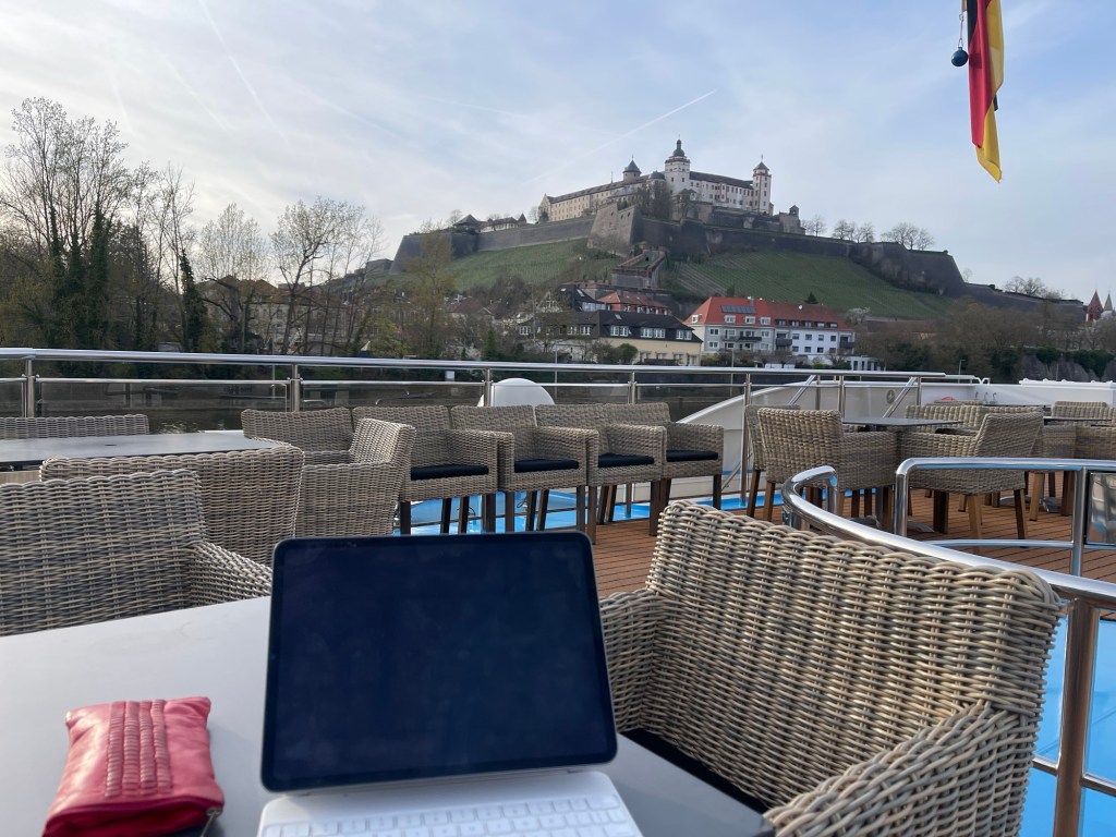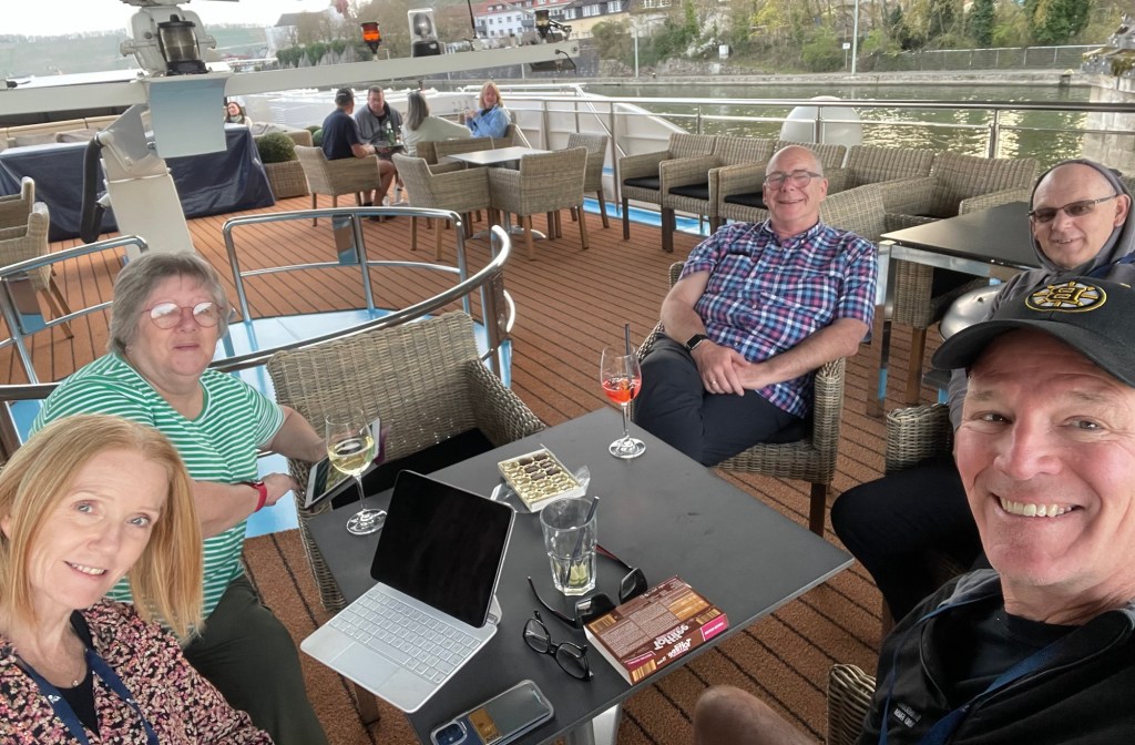 Post that 6 of our group met up on top deck for a bask in the beautiful afternoon sun and a cocktail or two. Julie and Gaz were still on the bus coming back from Rothenburg but joined us soon after.