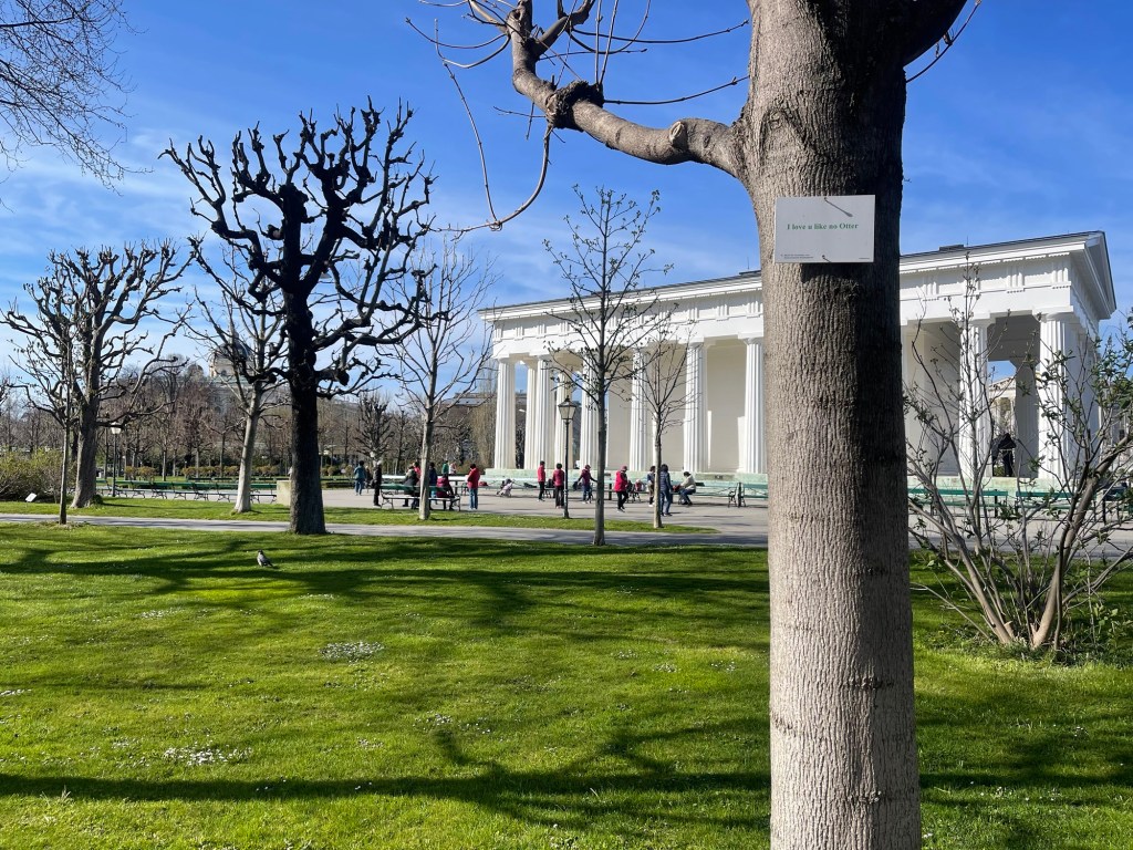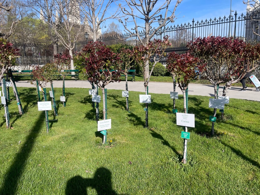 The Volksgarten (gardens) were created in 1805 and many of the trees and plants are sponsored, so they have the name of the plant along with the sponsor.