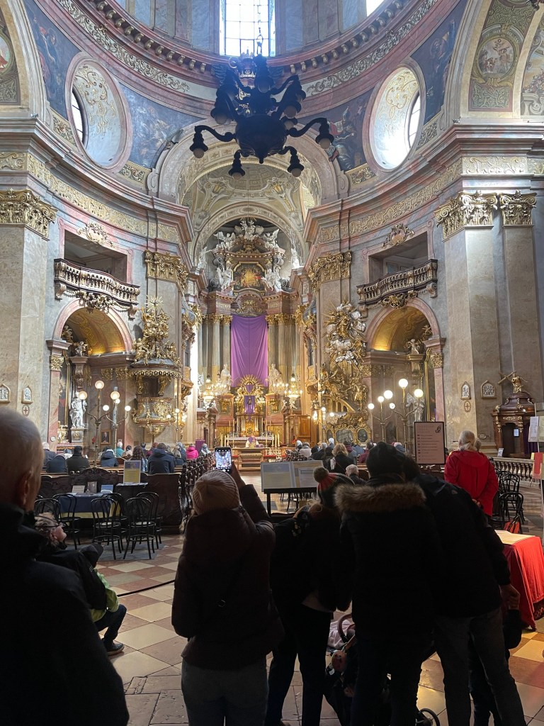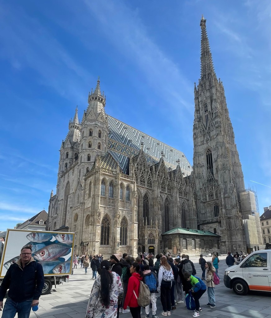 Our guide took us through the Volksgarten, past the Hofburg Imperial Palace. through town and ended our tour at Saint Stephen’s Cathedral. Lucky we ended there. I heard meek, mild Joy from our group, echo most peoples sentiments. If he doesn’t shut up there may be a murder. He wasn’t the best.