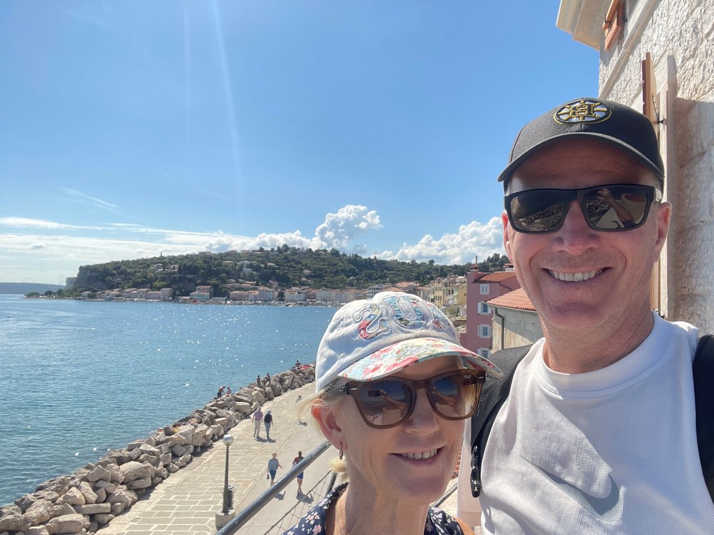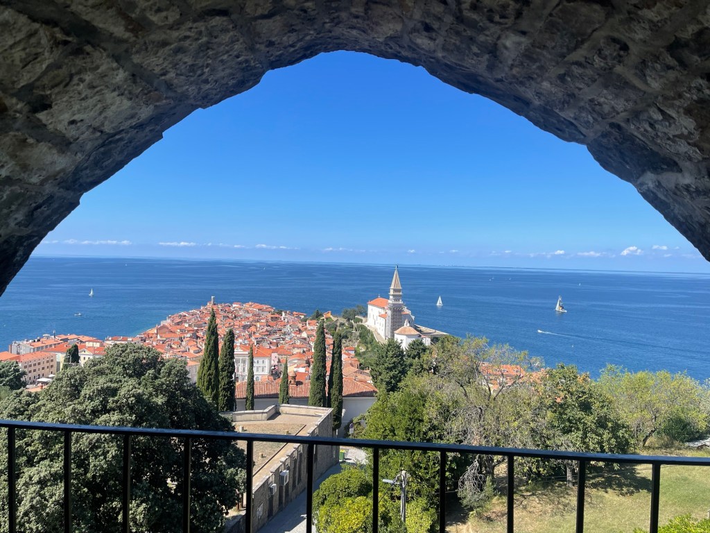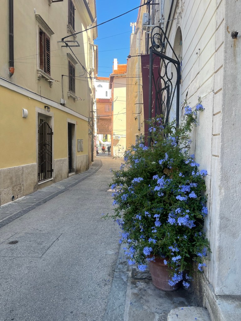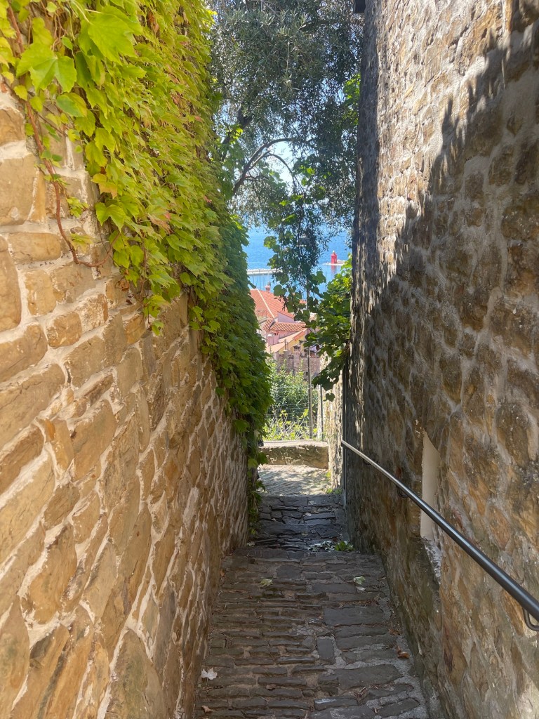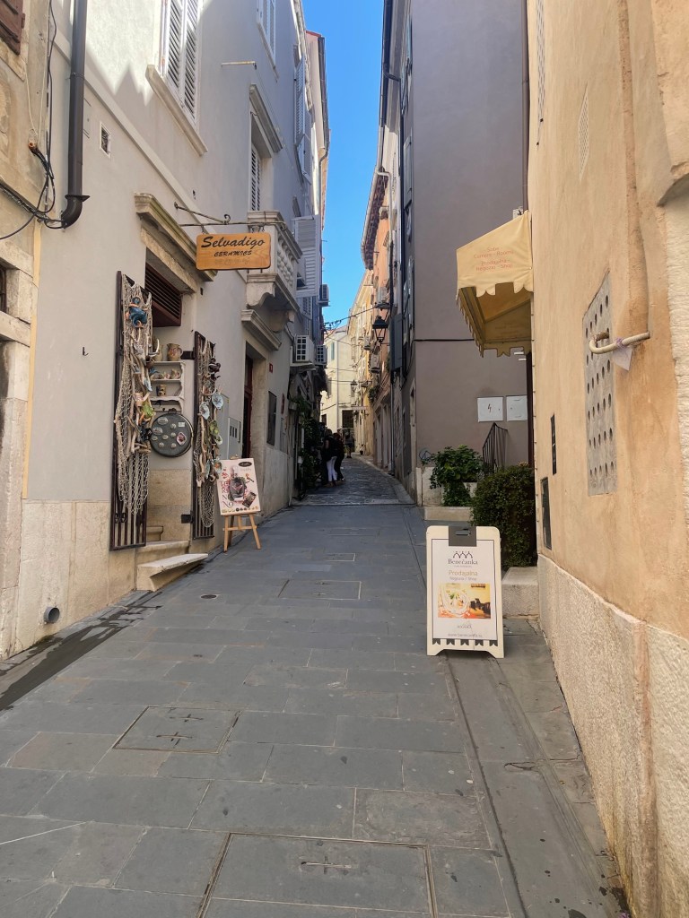 Piran is located at the end of the peninsula of the Slovenian coast. It’s been built under Venetian influence and tends to have a lot of Venice like qualities. Without the canals. It’s a maze of cobblestone streets, narrow little alleys and compact houses. Population about 4,000.