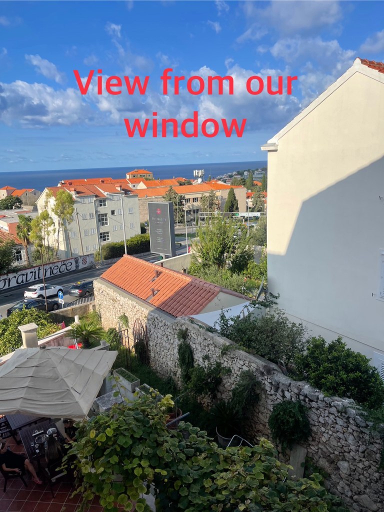 Plan B…..go back to Villa Dard to get rid of the ‘togs’ and head up the cable car to the Srd Hill for ‘the best views of Dubrovnik’. It is after all a 412 metre elevation. Built in 1969, on a clear day you can apparently see 60km from the swinging car. It was a clear day but unfortunately that bloomin’ wind meant no views unless we found a way up there on our own.
