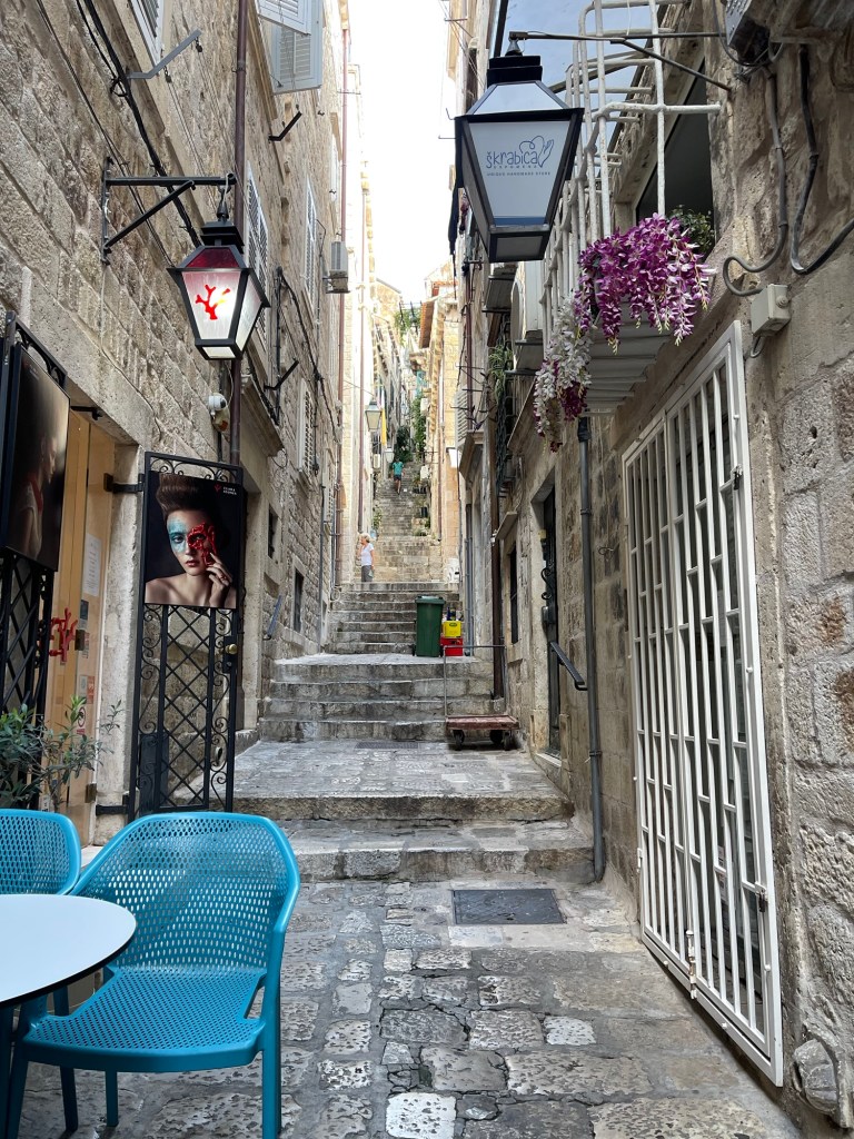 We loved Dubrovnik. It’s well worth a visit. It’s a totally amazing place. The history is incredible. It has gorgeous little narrow rabbit warren streets full of adventure, twists and turns. Very safe. Lots of cats. You can buy a Dubrovnik cat t-shirt or hat.