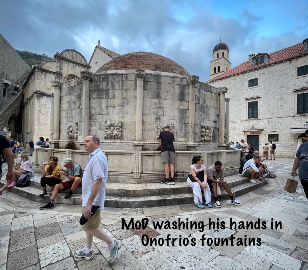 Last little bit of Old Town was a walk past and look into the Church of the Holy Annunciation, a wash of MoD’s hands in Onofrio’s Fountains, and quite a few more stairs out of Old Town and back up the hill to Villa Dard to pack up and prepare for Bosnia tomorrow.