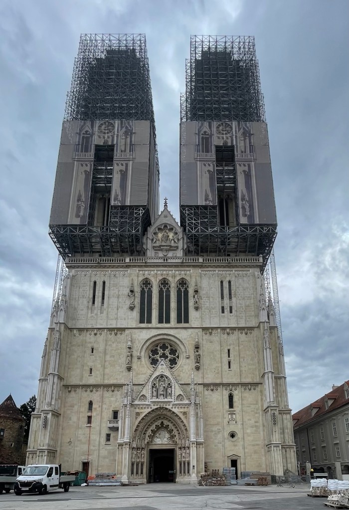 We headed uphill towards the Catholic Cathedral, officially the Cathedral of the Assumption of the Blessed Virgin Mary and Saints Stephen and Ladislav. Second tallest building in Croatia. The Zagreb March 2020, 5.3 magnitude earthquake damaged the spires; it is currently being repaired. Horrible shame. The inside is apparently something quite remarkable. At 108.4 metres high it is one of the tallest churches in the world.