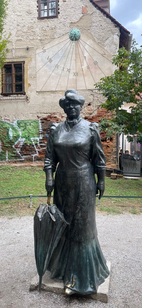 On the way, Marina Juric Zagorka, journalist, writer and woman’s activist, born 1873, was standing right out in front of the sun dial. Two touristy things at once. Bonus….