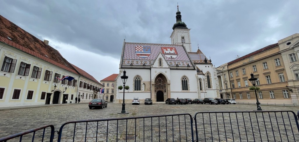 Not quite finished with churches, and not wanting to play favourites, we checked out Saint Mark’s Church with its amazing coloured tile roof. It’s one of the oldest buildings in the city and dates back to the 13th century. The building on the left of this picture is the Prime Minister of Croatia’s office. So another tour guide I eavesdropped on said.