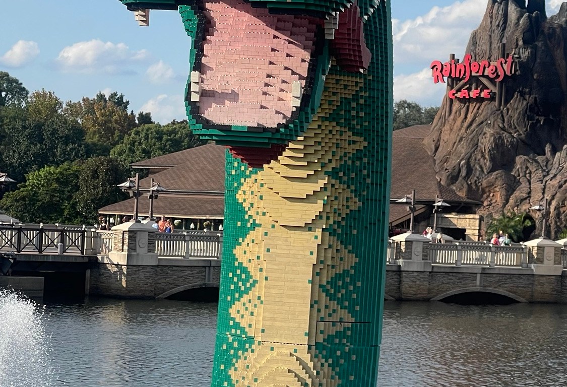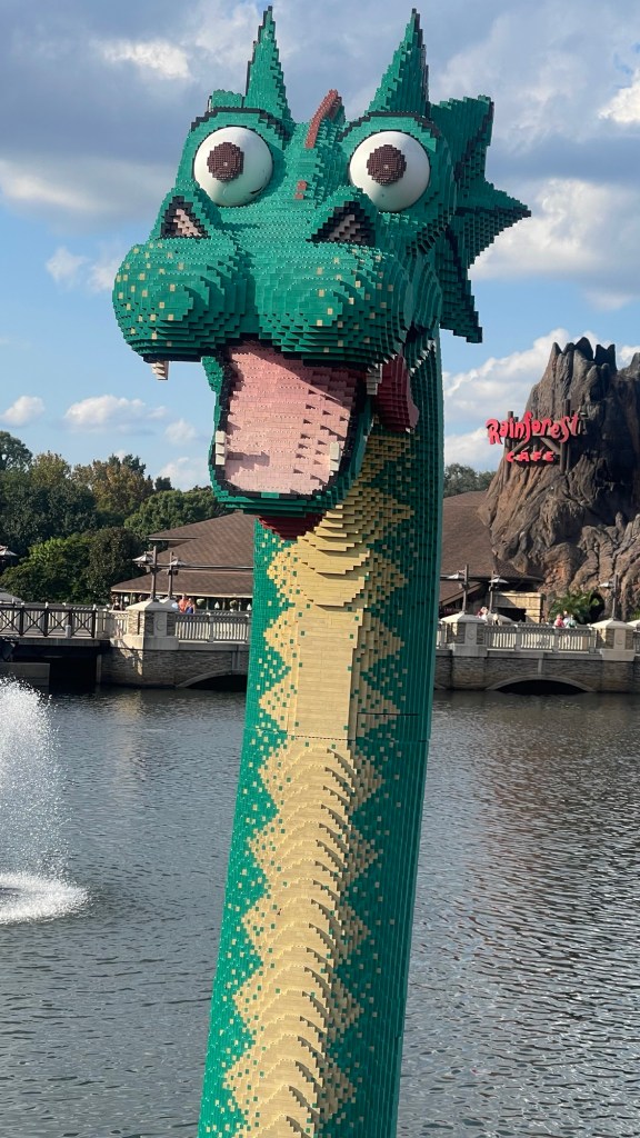 We ended up having an extra 1/2 day in DW after the kids left so headed to Disney Springs, the local DW shopping mall. It is an outside mall, heavily Disneyworlded. The local lego shop had the most amazing displays and even a lego dragon in the water.